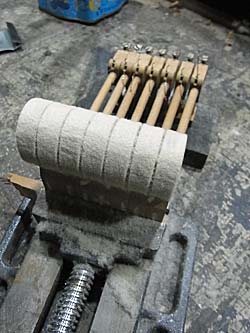長年使ったハンマーの弦溝の削除 これで元のタイト感あふれる音に戻りますね