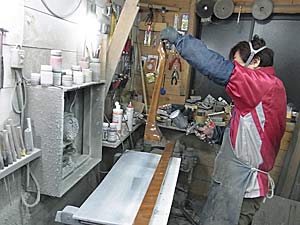 シンメル足部分の塗装 猫足は直線がなくすべて手作業でアール部分を削落とします