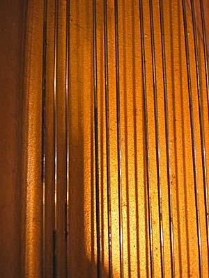 弦にぼつぼつとつく赤さび この錆はのちに断線につながりますね、今のうちに削除
