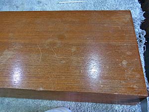 爪傷を削り取るが深いところは無理 これ以上削り込むと化粧板を通り越してしまう