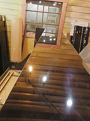 磨き前の鍵盤蓋奥丸部分