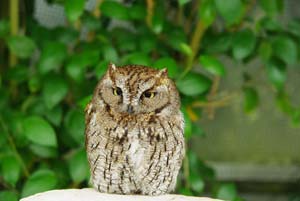 掛川インターそばにある花鳥園、こうしてフクロウ鳥なといっぱい放し飼いだ