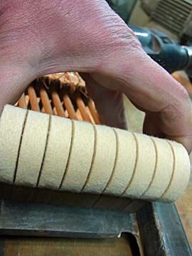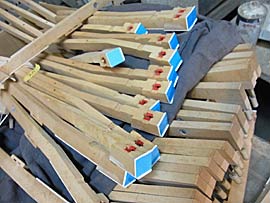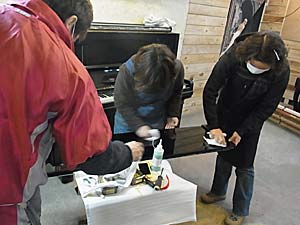 バランスキーピンフロントキーピンの磨き込作業、原始的な手作業