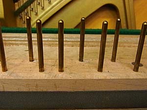 鍵盤の中心に位置して鍵盤バランスをとるところのピン、鍵盤上下運動の中心的な役割を果たす。当然この中心部分を軸に鍵盤は上下運動する。このピンが鍵盤に摩擦抵抗を与えている。少しでも抵抗をすくなくするために磨きあげます