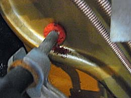 ハンマー整形ファイリング作業 弦溝をきれいに削除します この剥き方ファイリングいかんでピアノの音色は大幅に変化します