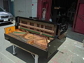 渋川よりブラザーピアノ入荷しました これからすぐにクリーニング作業にとりかかります。