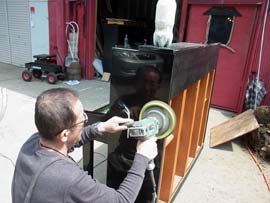 ぶらざーのロゴもひかり始めてぴかぴかになり、磨いているナベサンもご機嫌