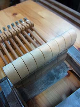 鍵盤木口の加工はみ出した木口をきれいにカットしていきます
