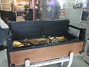 ピアノクリーニングでピアノを寝かして底板も外しペダルを分解