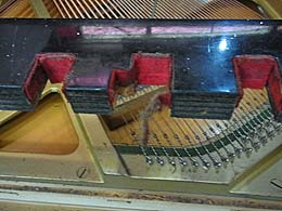 カビシミ、〜ダニなんでも入るピアノ 細部まで分解クリーニング、吹き飛ばせ削り倒せ そうしないとまた繁殖してしまう