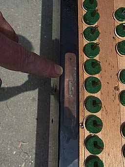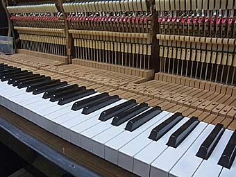 上で述べたキーピン関係 けん盤下位置にあるこのキーピン鍵盤バランスをつかさどるところ、このピンがさびるだけで鍵盤抵抗摩擦は一気に跳ね上がる、そうすると鍵盤タッチ感触に大きく影響してしまうのだ。さてこれをきれいに磨くとなるとこれ一苦労時間も大いにかかるために