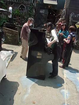 ピアノ裏側は誇りがたまっています今日は天気も良く湿気も少ないために外での作業