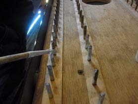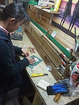 けん盤も入り弦が届けば張れる・・・・・と思いきやなんかおかしいぞと・・・・長駒を覗き込んだら