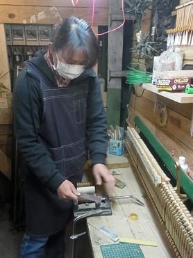 弦は古いために切れないように慎重に作業を進めなくてはならない