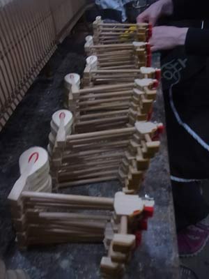 フリッツクーラーピアノ鍵盤上面深さ調整からです ここは10ミリ鍵盤が下がるこの運動量ですべてのからくりをそつなく動かすところ