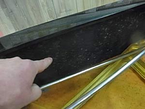 けん盤蓋磨きクリーニング 傷は普通のスポンジバフでは取れないために特殊なバフで落としていきます