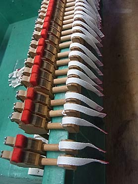 けん盤下位置にあるバランスキーピンとフロントキーピンさびて変色しています