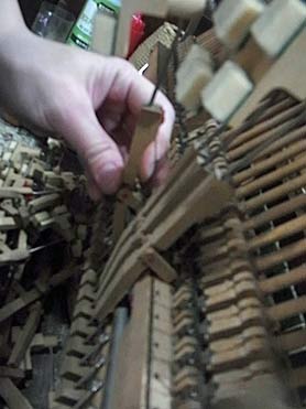ピアノ底板取り外してペダル部分のチェック修理分解作業