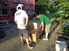 ピアノ本体を寝かして底板等の分解作業だ