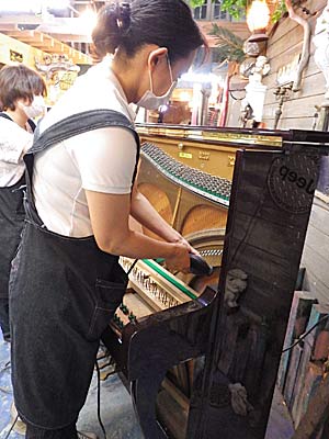 けん盤も1本1本サンディング クリーニングしていきます