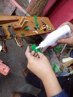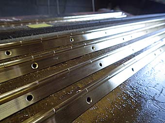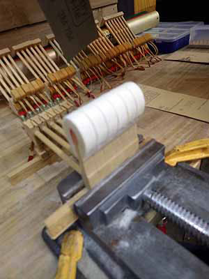 ハンマー整形作業続く 深い弦溝を慎重にファイルしていく作業だ