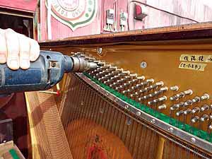 この作業は写真では実に地味に感じ取られるかもしれないがピアノを触る作業でクリーニングよりも大切な作業だ