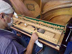 弦関係の磨きクリーニング 錆はピアノにとって大敵早めの錆取りは必要だし