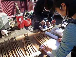 出来上がった底板を取り付ける 底板等を取り付けるビスは全て新品に交換されます
