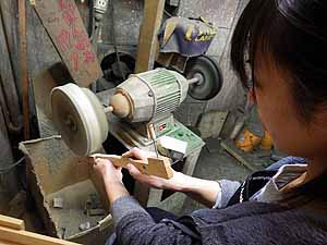 はんまー整形ファイリング作業 深い弦溝を取り去り元のハンマーの形に戻します