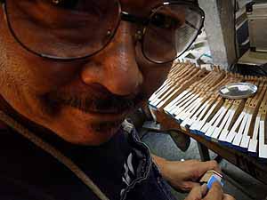 木口交換している義春氏 修理の職人名人 ピアノプレーヤーでもある