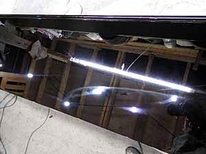 底板分解作業 綺麗にした後今度は湿気が上がらぬように塗装します クッションクロスも新品に
