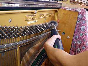 けん盤下は長年にわたり埃に覆われまみれてしまっている
