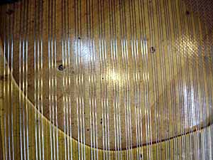 弦を点でたたくというところが大きく音に影響するのである 長年使うと点ではなくあたる部分が平たくなり面で弦を打つようになる