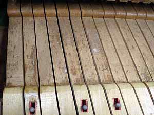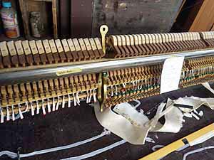 鍵盤運動をつかさどる大切なところだ このピンが錆びるだけで鍵盤運動は大きく変化するところにある。