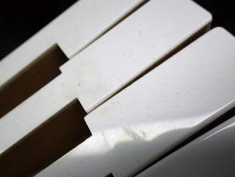 鍵盤蓋 無数に細かい傷が見える鍵盤蓋表面