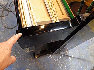 ピアノ本体を寝かして底板取り外し 底板を止めているビス等もさび付いているのですべて新品に交換