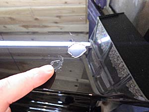 鍵盤蓋表面一番傷がついているところ このスジスジキズの下から本格的な傷が表れる