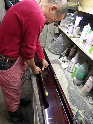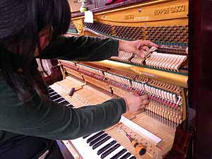 ピアノ本体を寝かすことによりより細かいところにまで目が行き届く