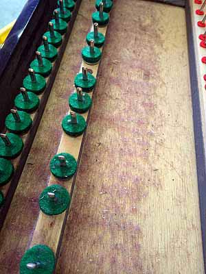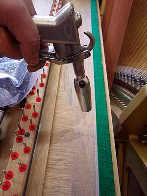 ハンマー整形ファイリング作業 ハンマーの弦溝をきれいに削除してアタック感のある音色を取り戻します