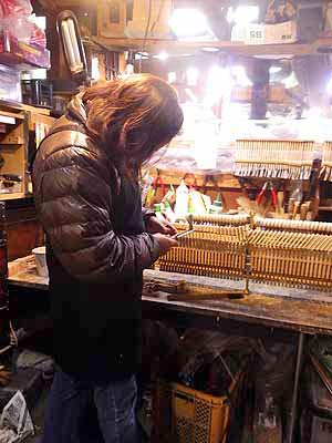 ピアノハンマー整形ファイリング作業