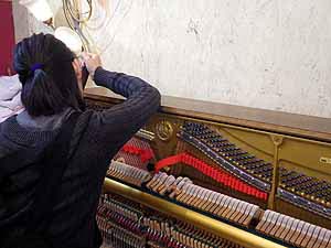 ぴあの整調修理 アクションの動きを目で見て弾いてみて確認しながら作業を施していく