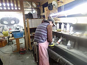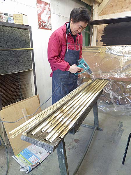 ピアノパネルの磨き作業 細かい傷が無数についています