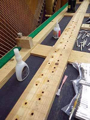 調律音上げ ここで鳴りの悪いところをヨシハル君すぐさま見つける何とかしたいなあ〜〜〜