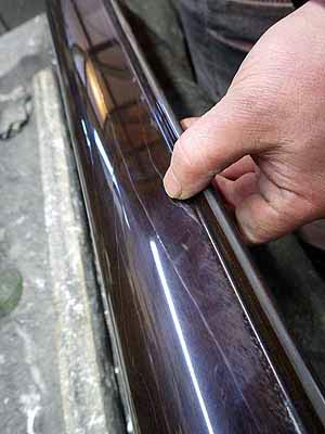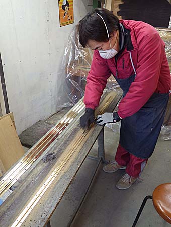 ヒンジは磨く そのあとウレタン塗装が施される ちゃんと塗装しないとすぐに変色してしまうのだ