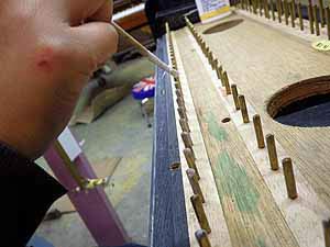 バス弦の錆とり作業