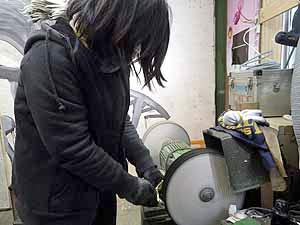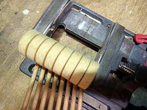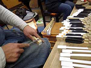ハンマー整形ファイリング作業 ハンマーのフェルトについた弦溝をきれいに取り除き