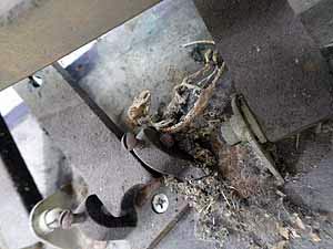 アクション内部はスラッジがたまる〜〜ネズミが侵入しかじられたあとありそこらも踏まえて直さなくてはならない