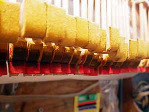 ヒンジは何台かまとめて磨いて錆止めウレタン塗装が施される