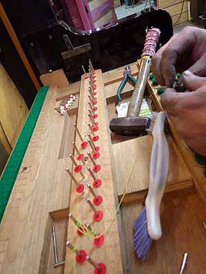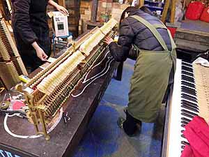 バランスキーピンを交換ホール調整を施しながら鍵盤を入れていく