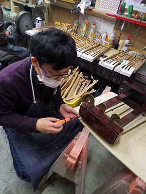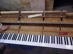 硬化したフェルト弦溝をもう一度張力を均等にして音色に幅を持たせる